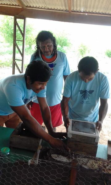 Lilian Caesar: La apicultura nativa implica el manejo de colonias de "especies de abejas nativas sin aguijón domesticadas", aquellas que podemos manejar en cajas. También puede incluir la construcción o la compra de cajas con la madera y la arquitectura adecuadas según la especie que vaya a vivir en ellas, ofrecer complementos alimenticios (por ejemplo, jarabe y polen) y extraer productos de la colmena (por ejemplo, miel y propóleo).
